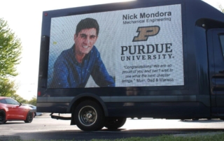 Congrats Grads! Parents at Perrysburg High School stepped up this year and organized something special for graduating seniors-- two parades of decorated cars! AIM Outdoor's digital truck had each student lit up on a big LCD screen, along with event sponsors on the back.